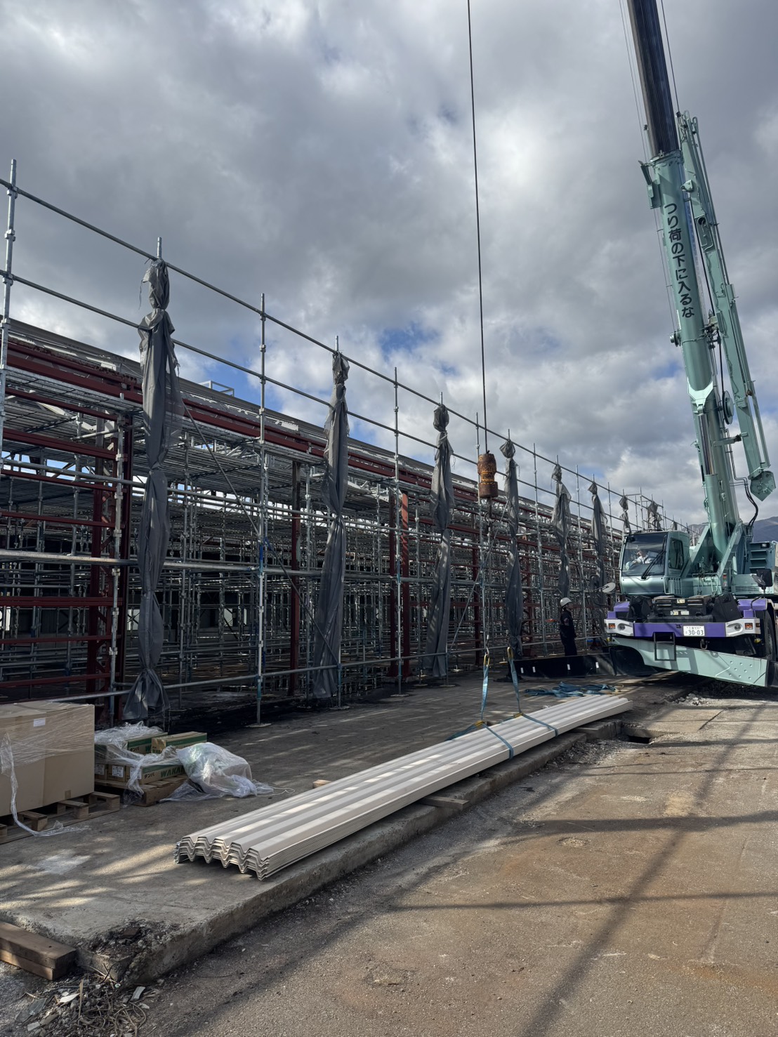 荷揚げから始まる工事は、現場の安全意識の高さを示すとともに、職人たちの経験と技術の見せ所でもあります。安全第一を徹底しながら、計画的に進めることで、工事全体の品質向上に繋がります。