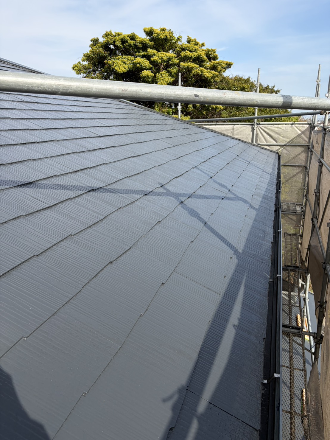 足場工事・カラーベスト屋根の交換・棟板金交換・屋根塗装工事まで一括で施工させていただきました。